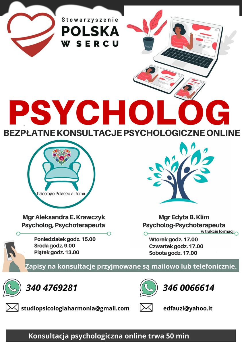Tags: polskawsercu, psicologopolaccoaroma, psychologonline, psychologwewloszech, stowarzyszeniepolskawsercu